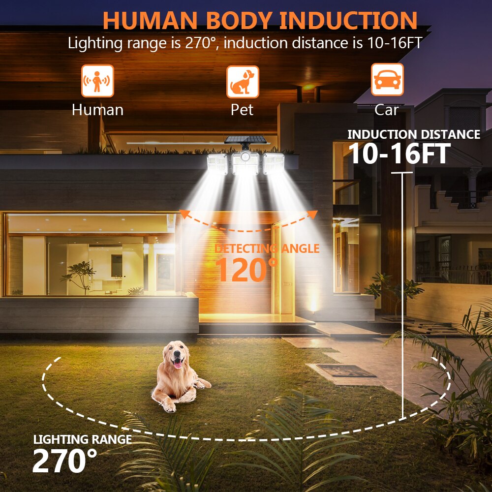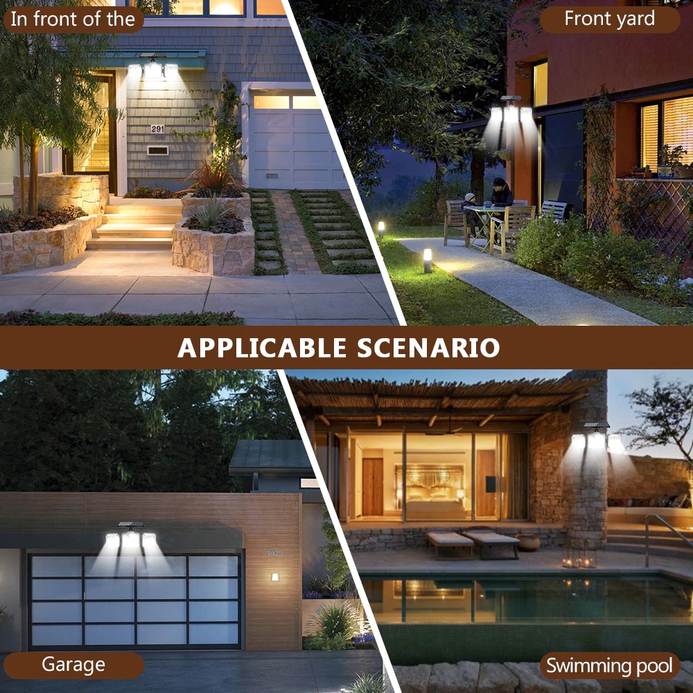 【Rotatable Spotlights】3 heads solar security lights have multi-joint rotatable design, can be rotated 360° for your requirements and provide a wider and more flexible range of light.