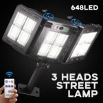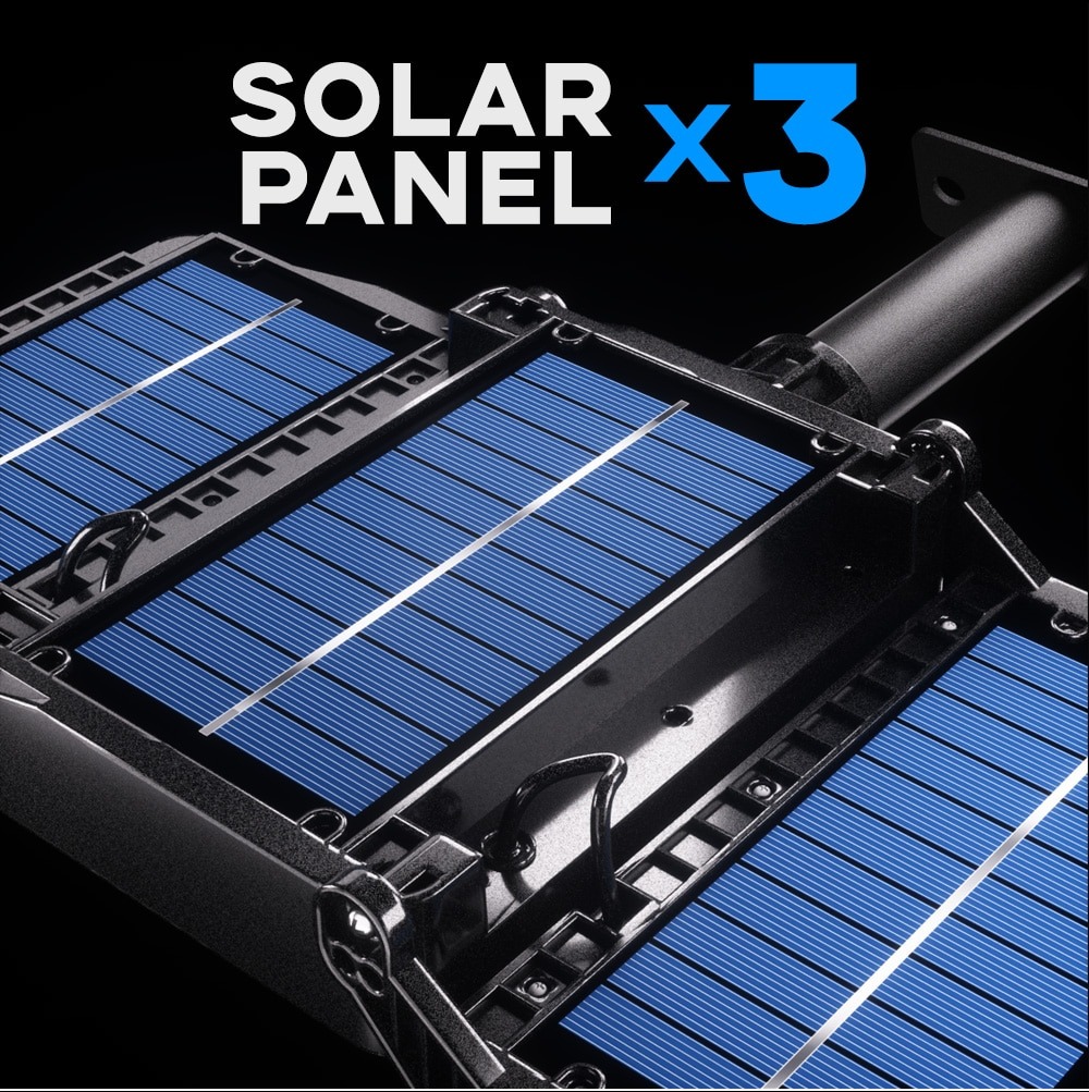 This is a 3 Heads street lamp with 3 solar panels totalling to 324w. Super bright with motion sensor.
