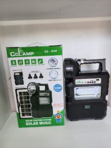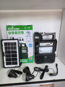 Fitted with 3 lighting bulbs, FM Radio, Flashdisk/memory card Reader, Bluetooth, Torch light and Dual Solar