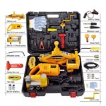 Electric Car Jack Lifting Scissors Jacks kit with impact wrench air pump electric tool for repairing car tools box professional.E-HEELP 12V 3Ton Car Electric Jack Built in flash LED Light With Impact Wrench and air pump and wireless remote control and jump starter.